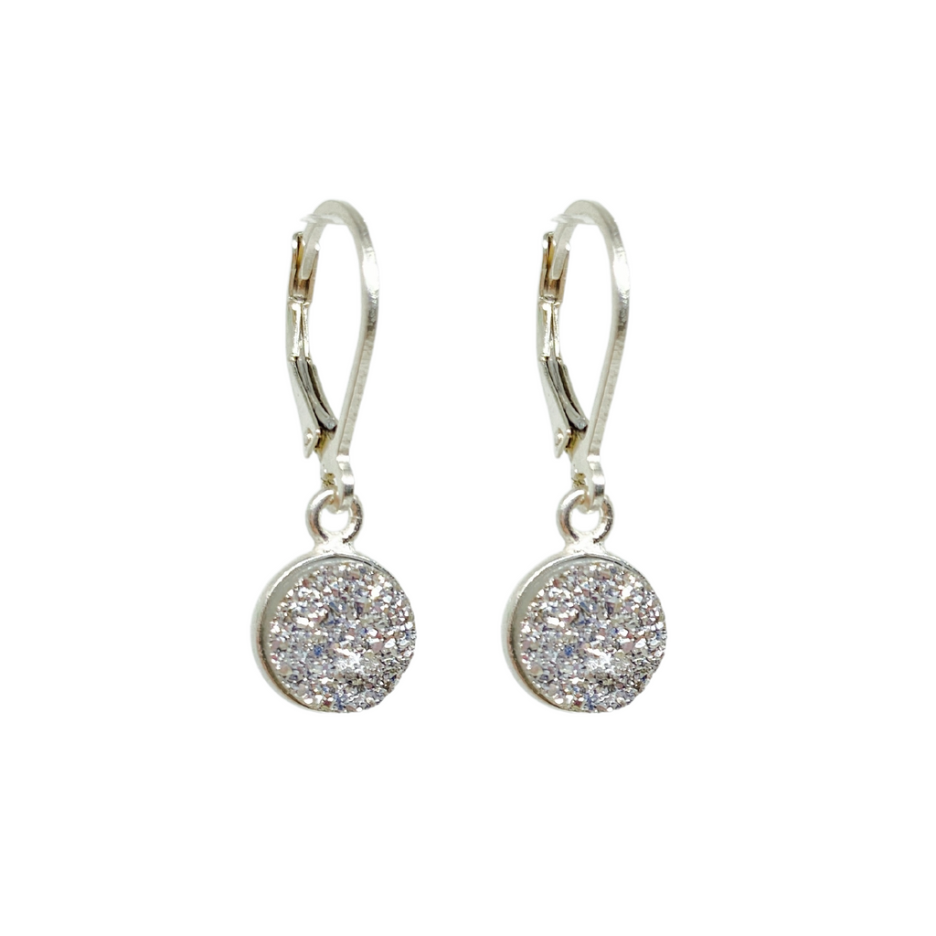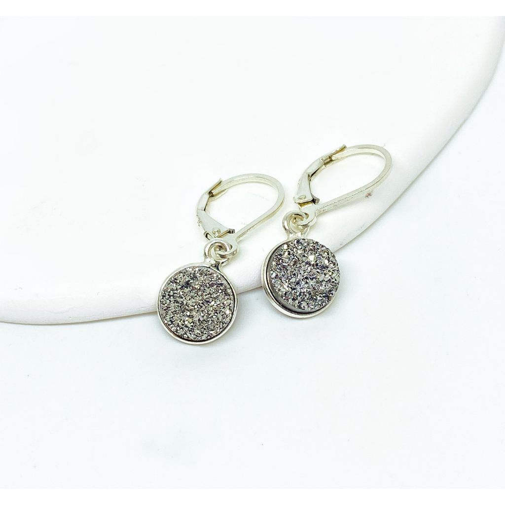 Add a touch of sparkle to your look with these gorgeous Natural Sterling Silver Druzy earrings. Made from a mass of tiny crystals, the unique texture and iridescent shine of the druzy stones make them the perfect addition to your jewelry collection.