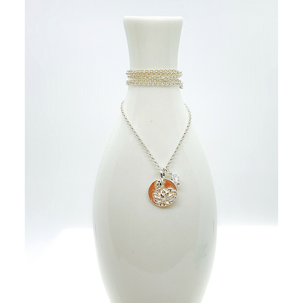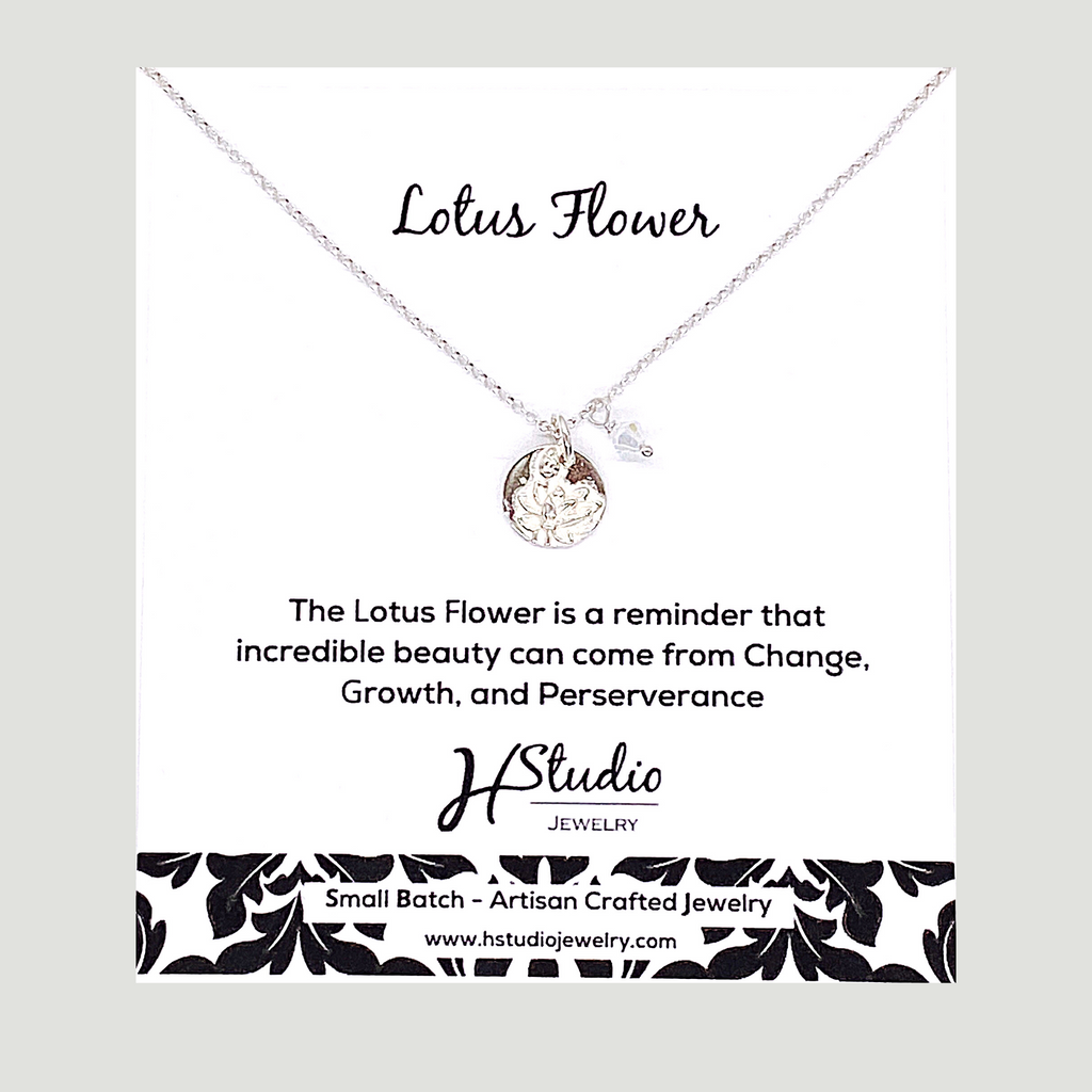 This beautiful Lotus Flower necklace will remind you that life is unfolding all around us. Each experience is an opportunity to start something new. Beautiful on its own or perfect for layering.