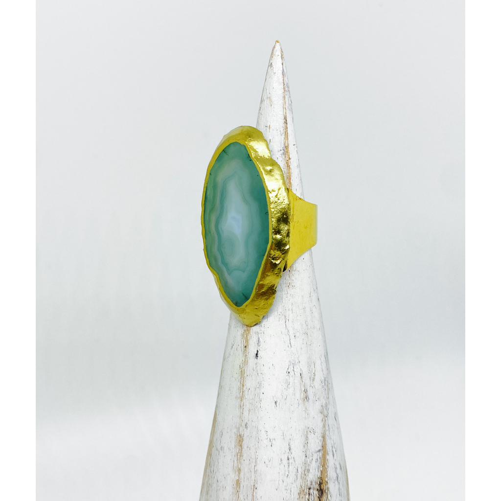 Make a statement with this bold TEAL agate ring. This unique, one of kind statement ring is for those who live to be different. Each gemstone is unique in shape, colour intensity, and size. A WOW factor ring, with beautiful bright colours!