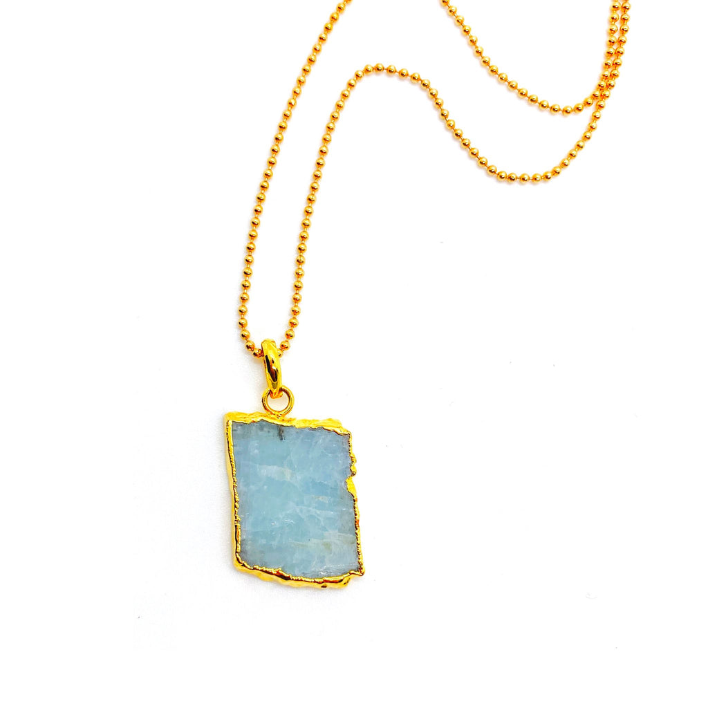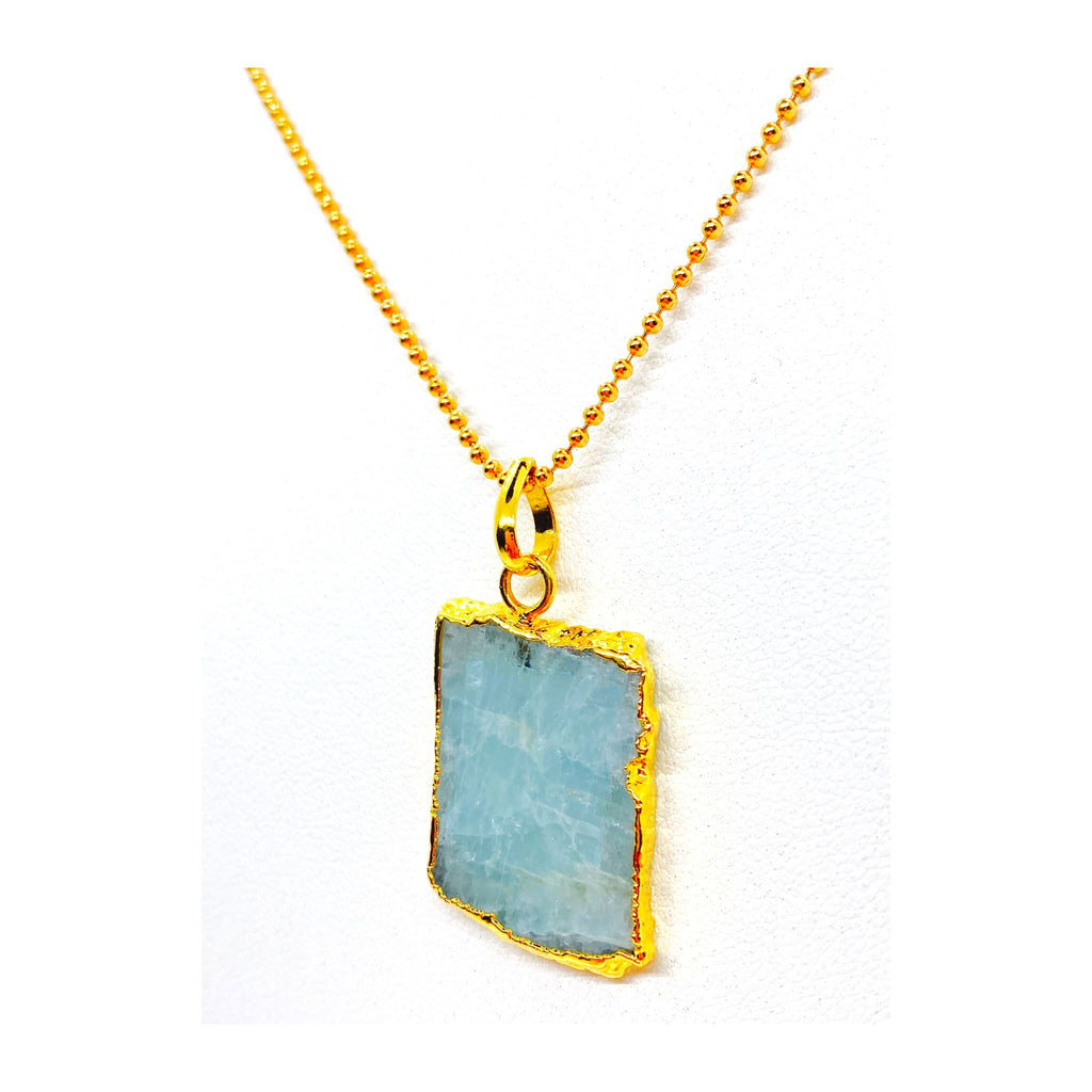 This necklace makes a statement with its unique appearance! A beautiful free-form pendant made from a raw & rough genuine aquamarine slice.